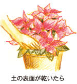 土の表面が湿っている間は水やりを控え、土の表面が乾いたらたっぷりやってください。