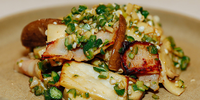 ふたを取り、強火にして転がしながらさっと焼き、めんつゆを加えて全体を絡めるよう炒めたら、完成!