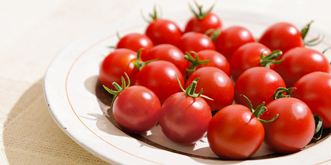 シュガーミニと若穫りライムホルンでつくるトマトと若穫りライムホルンのサラダ