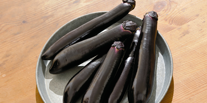 やわらか焼きナスの上に炒めた挽き肉をのせて、万能ねぎを散らし、柚こしょうポン酢をかければ、シンプルな焼きナスがおもてなし風アレンジになります。じっくりと焼いたナスは甘さと風味が引き立ちます。