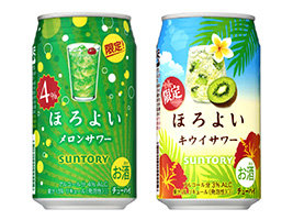 サントリースピリッツ(株)は、「ほろよい〈メロンサワー〉」「同〈キウイサワー〉」を5月14日(火)から全国で期間限定新発売します。
