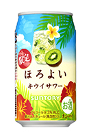 甘酸っぱくみずみずしいキウイの果実味を、「ほろよい」ならではのやさしい味わいでお楽しみいただけます。パッケージは、南国のビーチをデザインした背景に、キウイ果実やグラスをあしらい、爽やかなおいしさを表現しました。