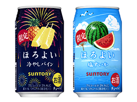 サントリースピリッツ(株)は、「ほろよい〈冷やしパイン〉」「同〈塩すいか〉」を7月9日(火)から全国で夏季限定新発売します。