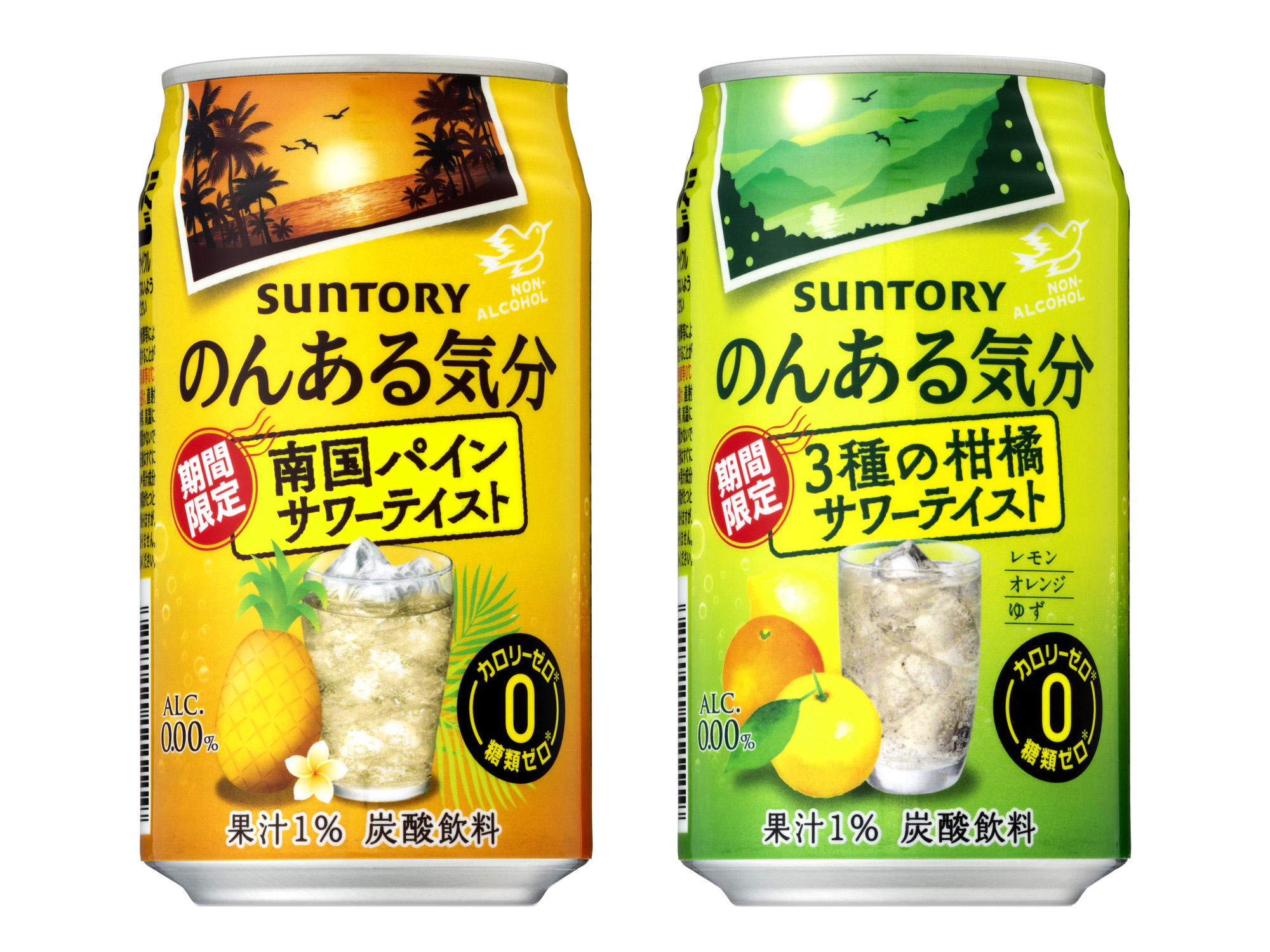 サントリースピリッツ(株)は、ノンアルコールカクテル・チューハイテイスト売上No.1※1ブランド「のんある気分」より、〈南国パインサワーテイスト〉〈3種の柑橘サワーテイスト〉を8月13日(火)から全国で期間限定新発売します。