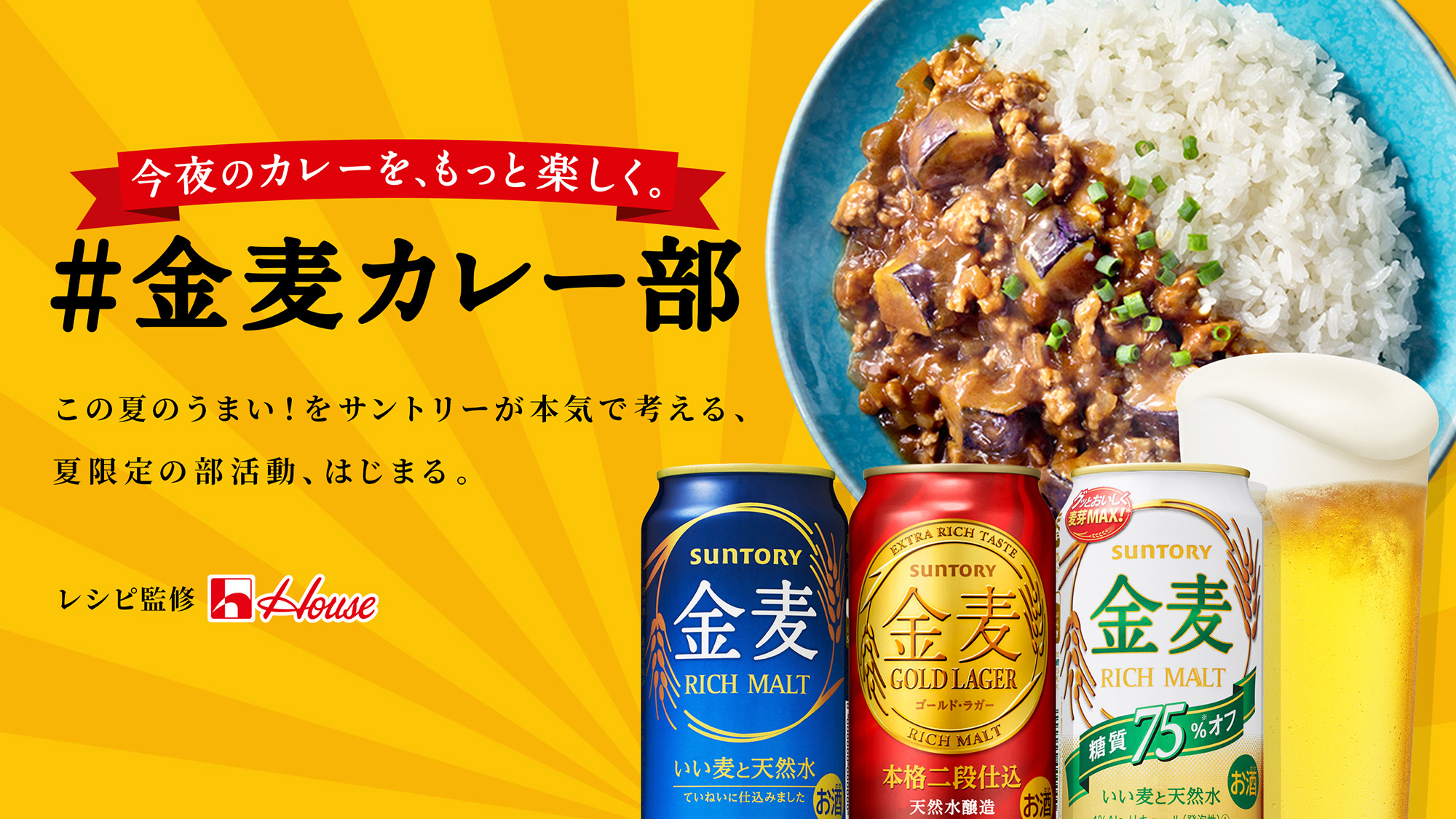 今回は、カレールーシェアNo.1※のハウス食品(株)にレシピ開発に協力いただき、“国民食”カレーと「金麦」の相性を考える『#金麦カレー部』を期間限定で実施します。