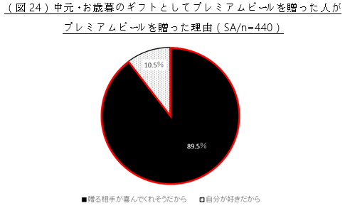 また、プレミアムビールを実際にギフトとして贈った人に、その理由を質問したところ、「贈る相手が喜んでくれそうだから(89.5%)」が、昨年同様約9割にのぼりました(図24)。