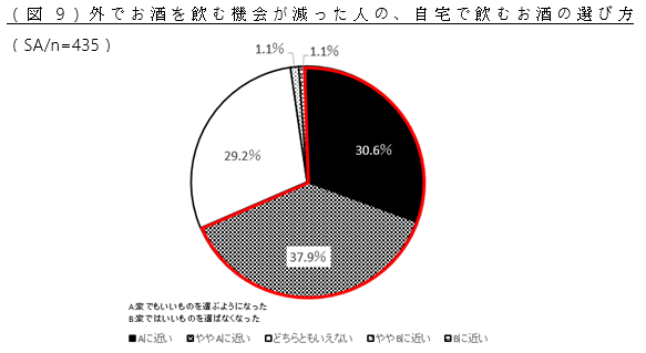 また、お酒の選び方について質問したところ、「家でもいいものを選ぶようになった」と回答した人が68.5%と7割近くにのぼりました(図9)。
