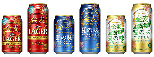 サントリービール(株)は、“夏の味”の「金麦」「同〈糖質75%※オフ〉」「同〈ザ・ラガー〉」を季節限定新発売します。