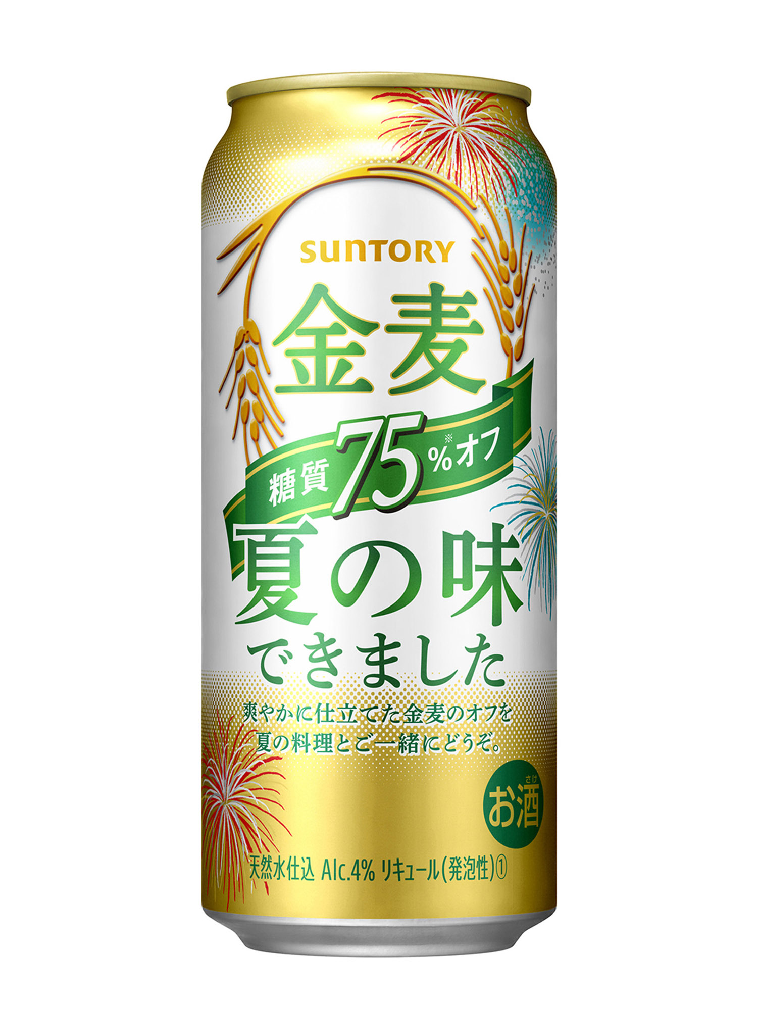 今回新発売する“夏の味”は、「金麦」の麦のうまみと澄んだ後味、「同〈糖質75%オフ〉」の麦のうまみとすっきりとした後味、「同〈ザ・ラガー〉」の飲みごたえと心地良い後味を、それぞれ夏らしく爽やかな味わいに仕立てました。パッケージは、色鮮やかな花火を全面にあしらい、夏らしい情緒のあるシーンを表現しました。また、「夏の味、できました」と記載し、季節で味が変わることをわかりやすく訴求しています。“夏の味”の「金麦」ブランドを夏のお料理とぜひお楽しみください。