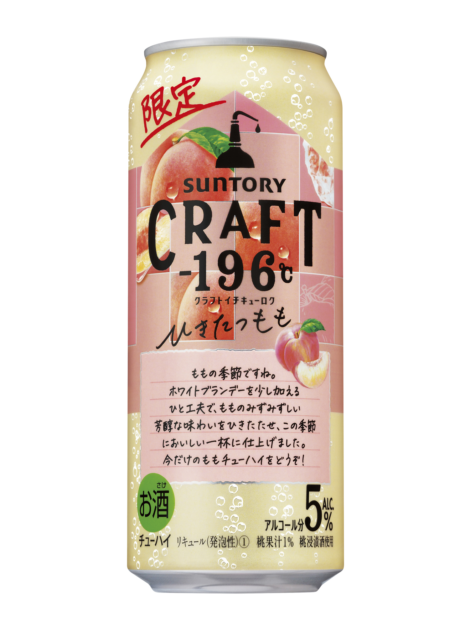サントリースピリッツ(株)は、「CRAFT-196℃(クラフトイチキューロク)〈ひきたつもも〉」を7月26日(火)から全国で期間限定新発売します。