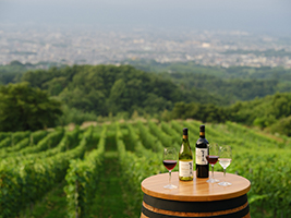 “登美の丘”を見渡せる眺望台・ぶどう畑・熟成庫を見学しながら、つくり手の技術と愛情で時間をかけて丁寧に育むサントリー日本ワインの魅力や、登美の丘ワイナリーのものづくりの歴史とこだわりを体感いただきます。また、ワイナリーの栽培・醸造技術の奇跡の結晶ともいえる「貴腐ワイン」をはじめとする日本ワインをテイスティングいただけます。