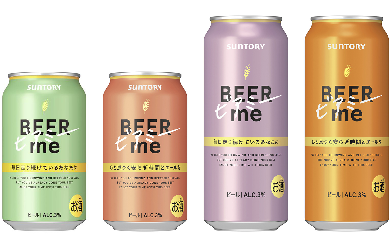 中味は、厳選した麦芽に加えて、コーングリッツを一部使用するとともに、当社として磨きをかけてきた高濃度醸造技術を用いることで、アルコール度数3%でありながら“グッとくる飲みごたえ”と“爽快で飲みやすい後口”を実現しました。パッケージは、当社ビール類として初めて350ml缶・500ml缶それぞれで表・裏が異なる単色の背景とし、「毎日走り続けているあなたに」「ひと息つく安らぎ時間とエールを」というお客様にお届けしたいメッセージをあしらいました。