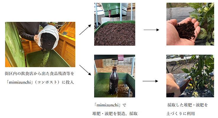 実証実験では三菱地所(株)と協力し、同社が開発を進める「TOKYO TORCH(トウキョウ トーチ)」街区(東京都千代田区)にミミズの入ったコンポスト「mimizunchi(ミミズンチ)」を設置し、街区内の飲食店から出る食品残渣(主にコーヒーかす)を投入します。ミミズを通じた分解により堆肥・液肥を作り、それを街区の植栽などの栽培に使用することで、街区内(都市部)の資源循環の実現を目指します。「mimizunchi」でミミズを飼育するにあたっては、定住型でコンポスト内に留まる性質を持ち、残渣の処理(消化)能力が高いシマミミズを活用。本コンポストは1日あたり最大で約2kgの残渣を処理でき、残渣を投入してから、約3カ月で堆肥が完成します。
