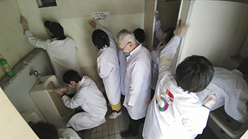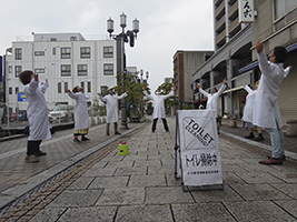 「おおいたトイレンナーレ」終了後は新たなメンバーも加わり、現在は20代から80代まで、職業も背景も異なる15名が市内各所の公衆トイレで清掃パフォーマンスを行っている。彼らにとってトイレをきれいにすることは目的ではない。街や公共施設を利用する人、日々清掃に携わる人への想像力を広げる手段であり、感性を磨く作業である。赤瀬川のパフォーマンスが社会への皮肉を込めたものだったのに対し、大分圏清掃整理促進運動会のパフォーマンスはトイレを掃除する人への気づきと感謝につながっている。