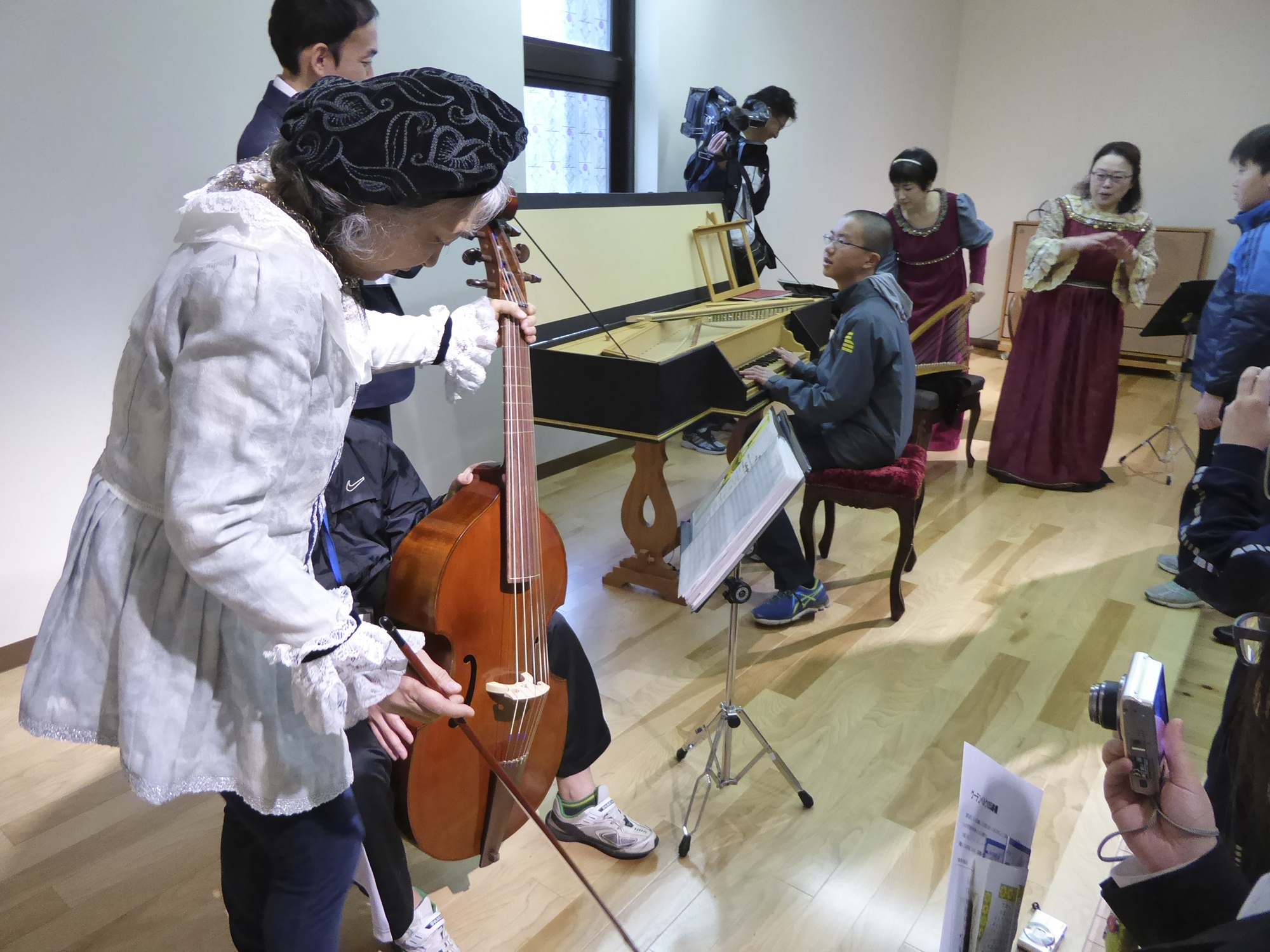 今、コレジヨの仲間が特に力を入れるのが地元の子どもたちとの楽器を通じた交流だ。「使節団の少年たちが生き抜いた時代を、当時の音色から想像してほしい」という思いで、天草市内の小中学生が校外学習で天草コレジヨ館を訪れる際には、演奏を聴き、楽器に触れてもらう活動を続けている。将来は、古楽器をより身近に感じてもらえるよう、子どもたちが演奏するリコーダーと一緒にアンサンブルをおこなうという目標もある。