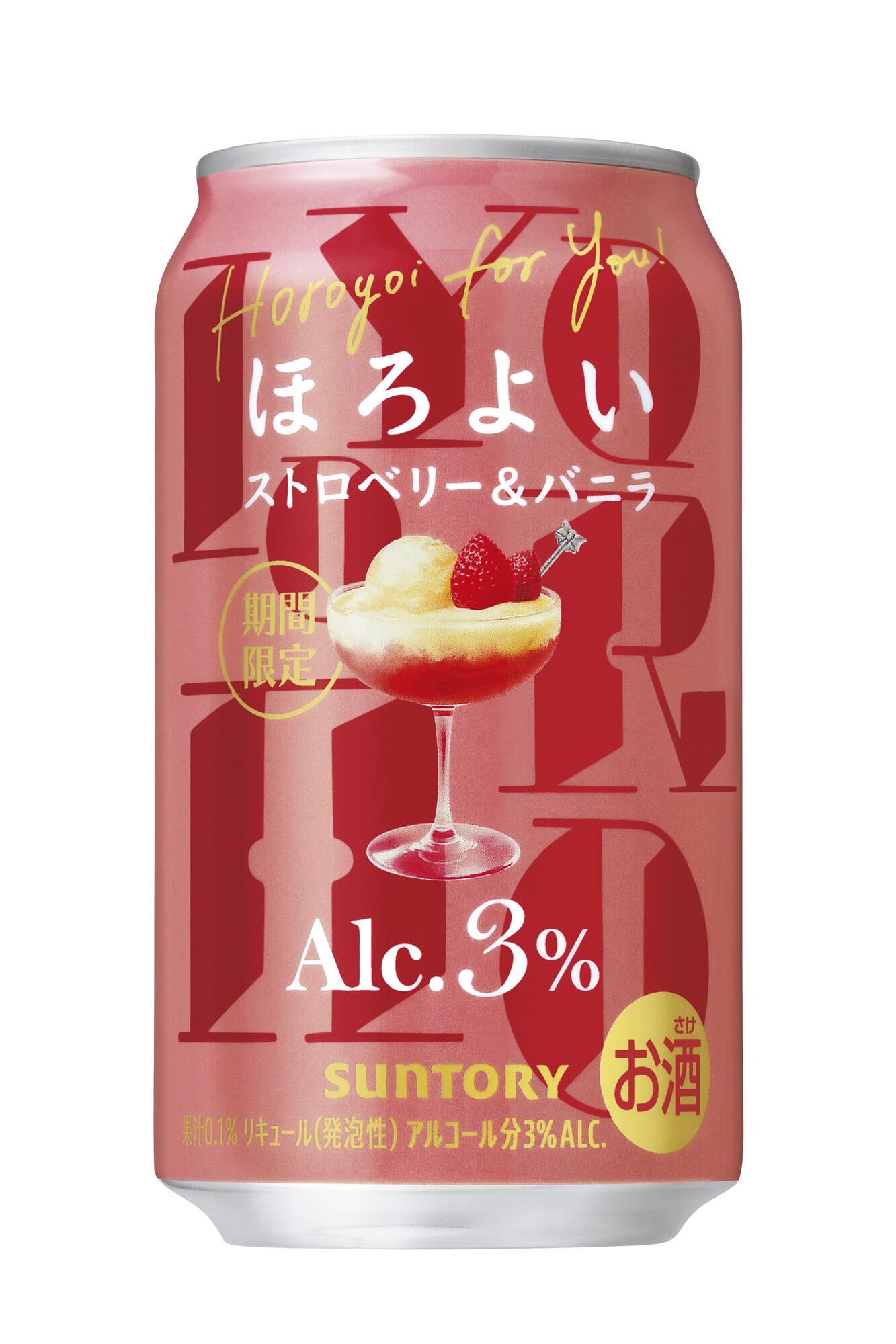 サントリー(株)は、「ほろよい〈ストロベリー&バニラ〉」を2026年2月3日(火)から全国で期間限定新発売します。
