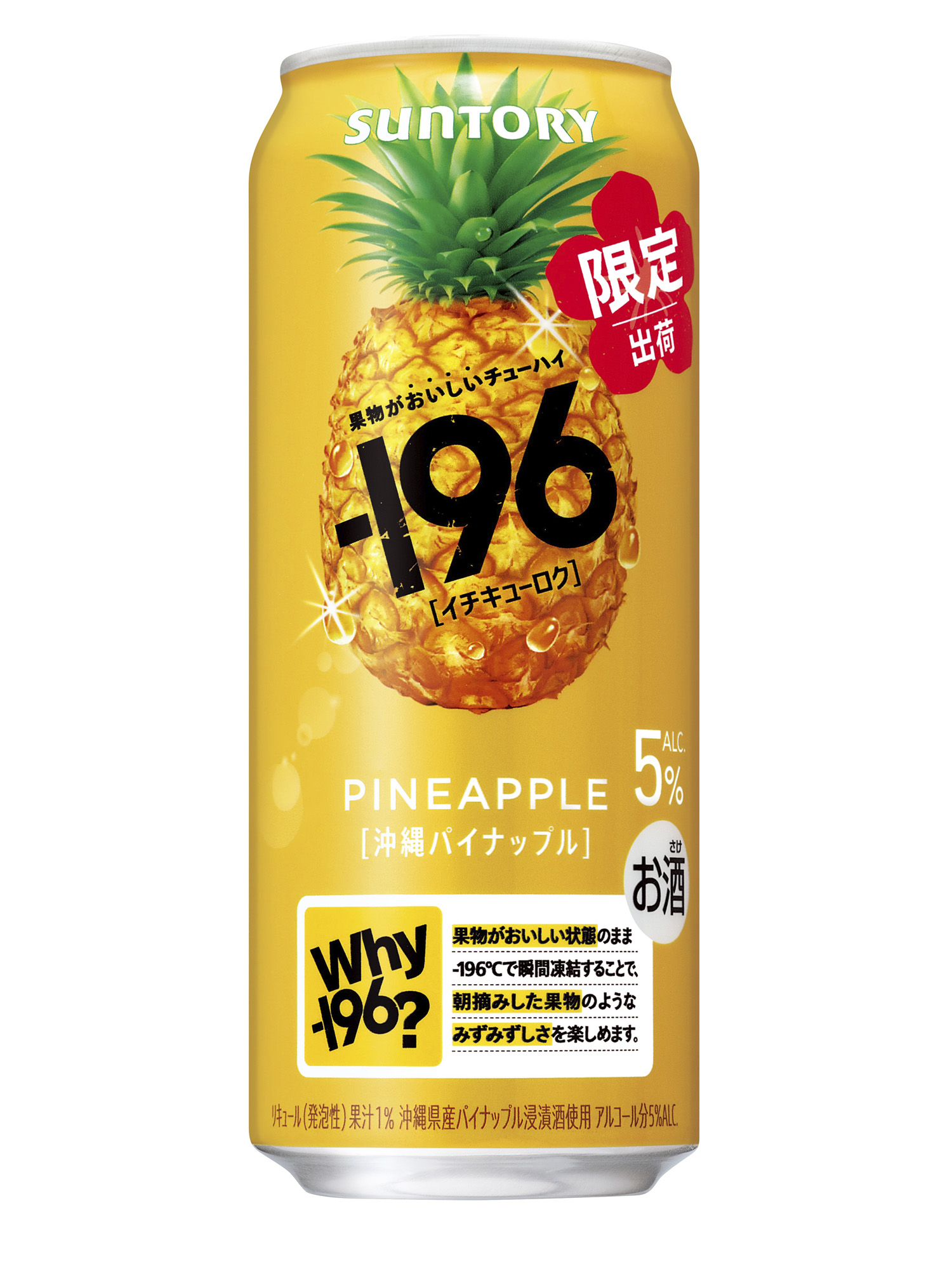 サントリー(株)は、“果物がおいしいチューハイ”「-196(イチキューロク)」シリーズから、「-196〈沖縄パイナップル〉」を5月5日(火・祝)より全国で期間限定新発売します。