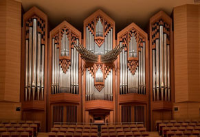 サントリーホールのオルガンは、オーストリアのリーガー社による製作で、ストップ数74、パイプ数5,898本を有し、世界でも最大級です。1986年10月12日、オルガンのA(ラ)の音とともに、サントリーホールは産声をあげました。落成式典で、佐治敬三館長(当時)がAの音を鳴らし、オーケストラのチューニングが行われたのです。以来約36年間、大ホール正面に位置するオルガンは、その優雅で荘厳な響きでホールを満たしてきました。