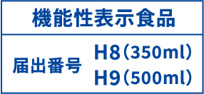 機能性表示食品 消費者庁届出番号 H8(350ml) H9(500ml)