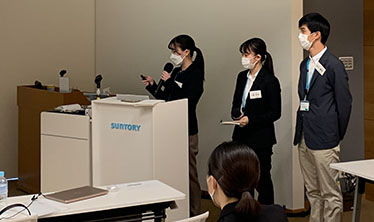 2022年度は自社の研究施設「サントリーワールドリサーチセンター」にて対面で約4日間のインターンシップを実施。 現場社員によるラボ紹介や座談会、そして実際に研究員が取り組んでいるテーマにチームで取り組み、マネージャーからのフィードバックを受けることでサントリーの研究の幅広さ・奥深さを存分に体感してもらった。
