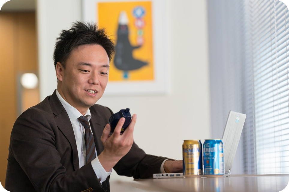 2005年入社。入社後、大阪のスーパー営業部に配属され、約6年間、大手スーパーのエリア営業やチェーン本部の営業を担当。スピリッツやビールなどの販売営業に携わる。その後、広域営業本部に異動。ここでも約6年間、コンビニエンスストアチェーンの本部営業を担当し、スピリッツやビールなどの店頭プロモーション企画に携わる。スーパーとコンビニエンスストア、2つの売り場を経験。その違いも含め、現場での店頭プロモーションのあり方などを身につける。入社12年目にプレミアム戦略部へ異動。「ザ・プレミアム・モルツ」ブランドを担当する。プレミアム戦略部では、プロモーションチームに所属し、ブランドコンセプトや戦略を具体的な販売戦略に落とし込むプロモーション業務を担当している。