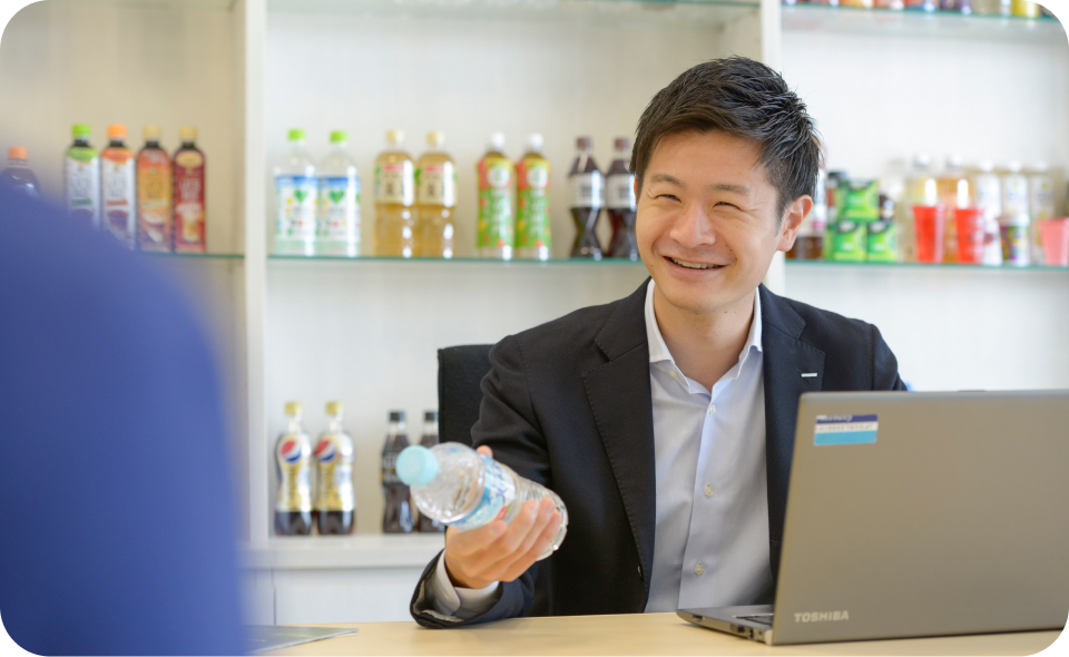 今後の目標は、自分で新しいブランドを立ち上げること。今は市場全体を見ても、既存商品のリニューアルや、既存ブランドの展開品が多くなっています。しかし、今はまだ見えていないお客様の潜在的なニーズを見つけることができれば、新ブランドを立ち上げるチャンスも訪れると思います。飲料は老若男女全てのお客様に価値を提供することができるので、視野を広げてさまざまなチャンスを探っていきたいと思います。