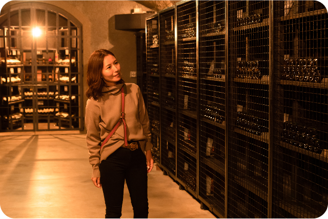 樽で熟成したあとは、「瓶熟成」の工程へ。ボトルのなかでも味わいが変わるのは、ワインならでは。そのメカニズムはいまだに解明されていないそうで、ちょっと神秘的ですね。瓶詰めされた熟成庫には、1960年代の「シャトーリオン」を始め、このワイナリーで生み出されたそれぞれの年の代表的なワインも、未来のつくり手に歴史を継承する資産として大切に保管されていました。フラッグシップワイン「登美」、貴重な貴腐ワイン「登美 ノーブルドール」、少量生産の「ワインのみらい」シリーズなど、多彩なラインナップに日本ワインの進化を実感することができました。