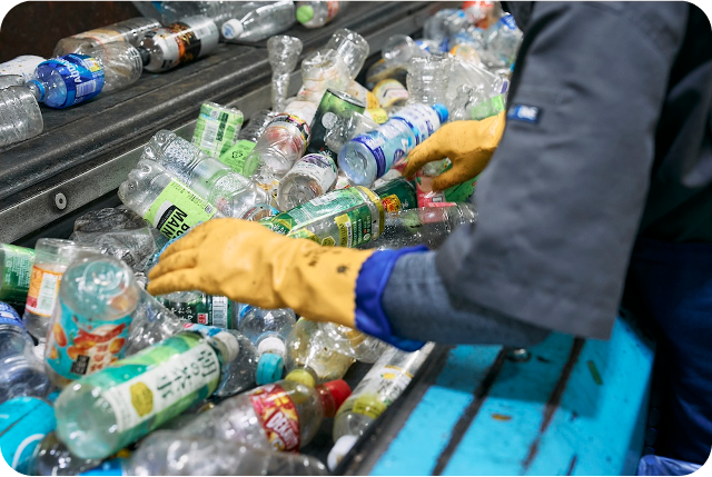 遠藤さん:そして、リサイクルボックス内に異物が混入していないことも重要です。リサイクル・プラザJBでは、人の目を使って缶・ビン・ペットボトル以外の異物が含まれていないかを細かくチェックしています。