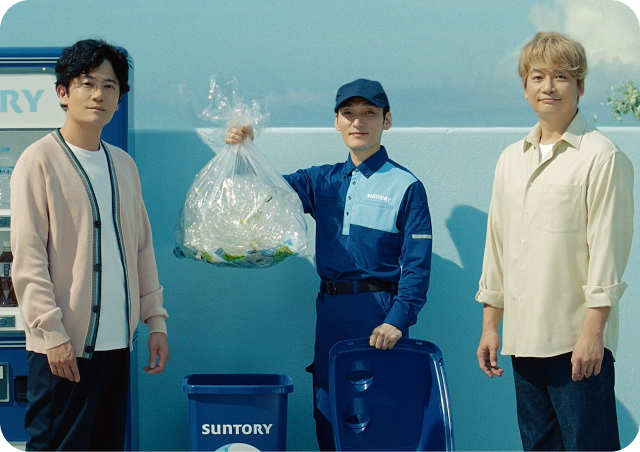 サントリーでは2021年より「#素晴らしい過去になろう」というメッセージを発信し、2022年10月からは稲垣 吾郎さん、草彅 剛さん、香取 慎吾さんと「リサイクルの日(10月20日)」にちなんだプロモーションを展開しています。今年の舞台は「自動販売機」。「なぜ自動販売機?」と思った方も多いかもしれませんが、サントリーでは自動販売機を中心に多くの社員がリサイクルに関わっています。