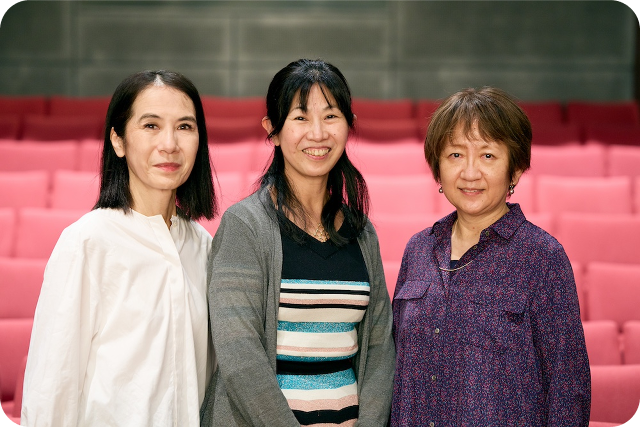 サントリー社員のNさんと、サントリーOGのEさん、Mさんも、1万人の合唱団の常連参加者。Nさんが「幅広い世代の参加者が創り上げる『第九』はまさに人間賛歌。『人と自然と響き合う』というサントリーの思いとピッタリですね」と語ると、Mさんは「たくさんの人がともに暮らす世界で、サントリーの社員もそうでない人も関係なく思いをひとつにできる素晴らしい機会です」と頷きます。Eさんは「私たちが今、歌い継いでいくことで、次の世代にも長く残していきたい」と、サントリーの企業風土を良く知る3人だからこその感想が飛び出しました。