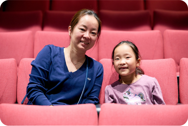 東京都のRちゃん(8歳)は、お母さんと一緒に今年初めての参加。10月のレッスン会場では「1万人の合唱がどんなにすごいか想像もつかないし、緊張もするけど、すごく楽しみ!」と意気込みを聞かせてくれました。お母さんがドイツ語の歌詞にフリガナをつけ、少しずつ音で覚えていくという二人三脚の練習法で、本番に向けて猛特訓の毎日です。