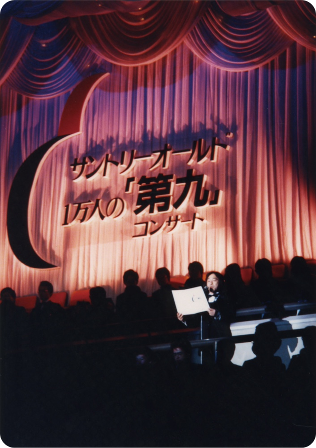 2024年で42回目となる同公演が初めて開催されたのは、1983年。大阪城ホール(大阪城国際文化スポーツホール)のオープニングを彩る「こけら落とし」として企画されました。誰も試みたことのなかった音楽史上最大の演奏会を「おもろい企画や、やってみなはれ」と後押ししたのは、当時のサントリー社長・佐治 敬三氏。それ以降、大阪にルーツを持つサントリーがスポンサーとなり、大阪発の文化事業として40年にわたり続けられてきました。