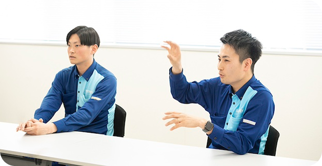 ルートセールスの上野 颯也(うえの そうや)さんと、清水 祐良(しみず たくみ)さんは、ともにサントリーが大好きでSBSに入社したというお二人です。