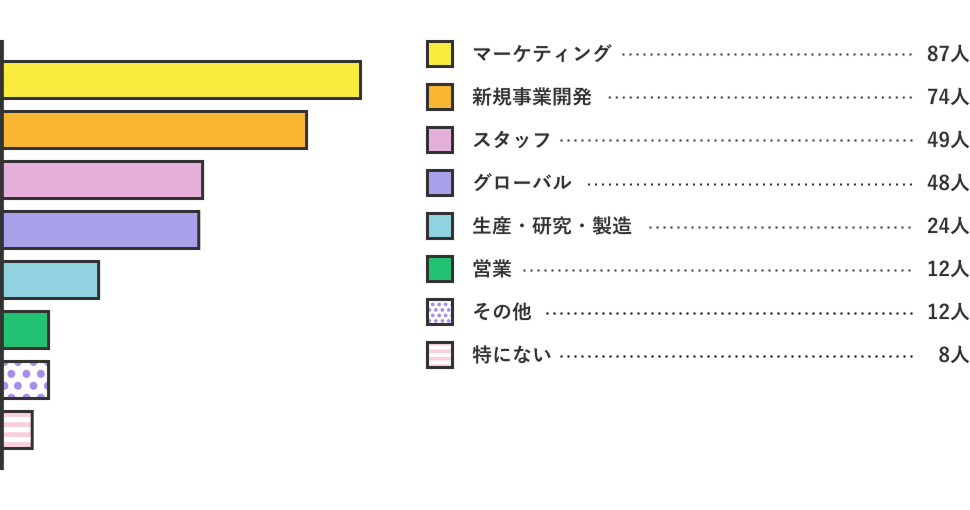 「マーケティング」「新規事業開発」にチャレンジしてみたいという社員が多いようです。