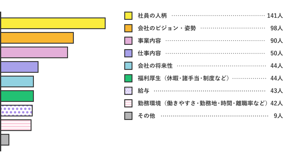 社員の人柄に惹かれて入社を決めた人が一番多いという結果になりました!