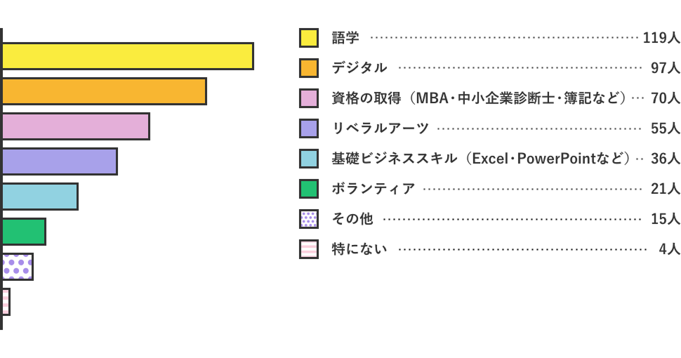 1位は「語学」、ついで2位は「デジタル」という結果になりました。