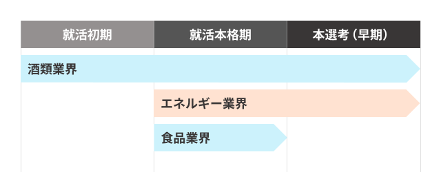 酒類業界だけに絞ってしまうことに少し不安があったため、様々な業界の説明会に参加しながら、就活の軸に合う業界や企業を見定めていきました。
