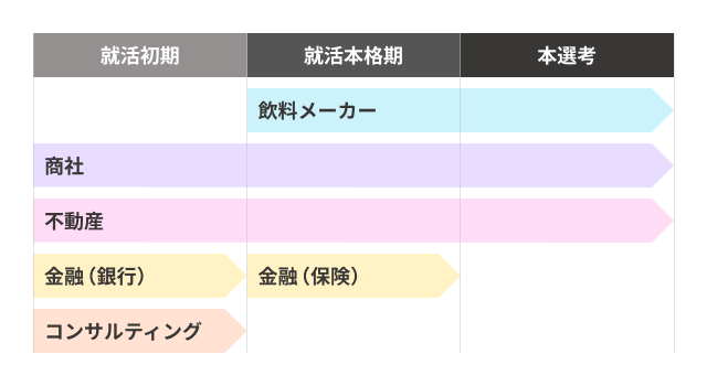 本選考ではエントリーシートを提出する企業の数を絞り、準備にしっかり時間をかけて面接に臨みました。エントリーした企業はそれぞれ業界が異なるため、OBOG訪問などを通して理解を深め、各企業ごとに合った回答ができるよう心掛けていました。