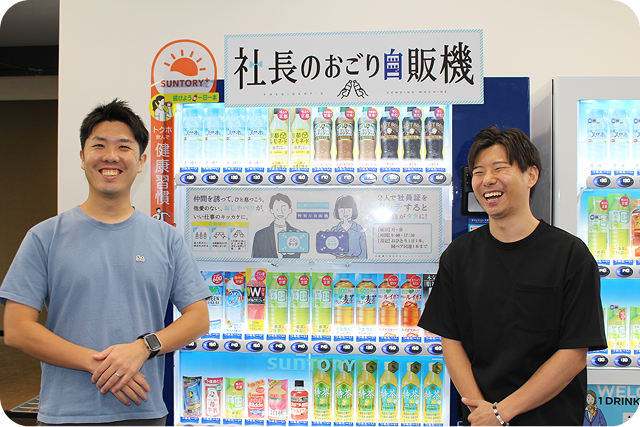 「社長のおごり自販機」の推進には、チーム全体の連携が欠かせない、と松本さん・湯浅さんは語ります。
