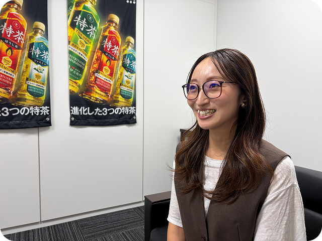 現在、九州支社企画部営業推進課で「伊右衛門 特茶」や「ZONe ENERGY」のブランドを担当している中城さん