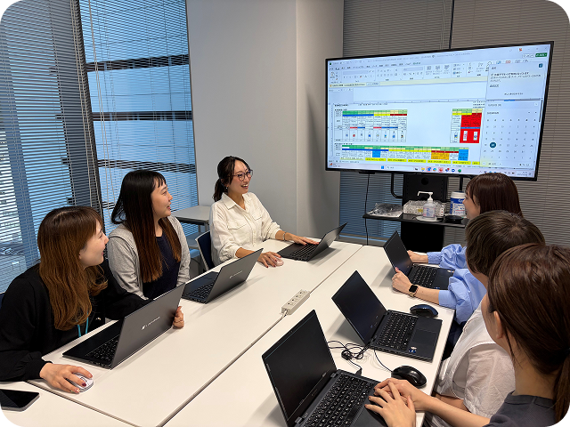 篠崎さん:営業推進本部から指示があった際は、まず企画部内で支社方針を検討・議論し、その内容を営業全体へ説明します。メンバーへ説明する際は、営業推進本部の意図や目的を踏まえた背景を伝えることを心がけています。
