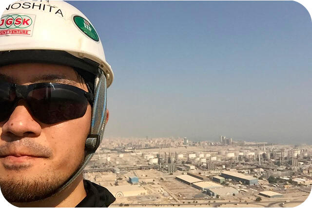 クウェート時代の木下さん。国内から海外の現場の設計に携わりながら、クウェートにも2年間滞在。グローバルなキャリアを歩んできた。