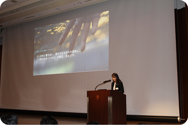サントリー入社に向けた理念講和では、企業理念のValuesである「Growing for Good、やってみなはれ、利益三分主義」についての説明が行われました。