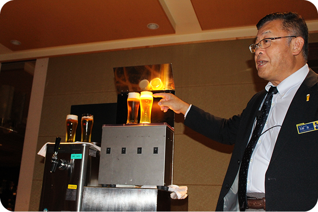 懇親会では、サントリーが大切にしている飲用時品質のこだわりを体感する樽生品質セミナーが実施されました。