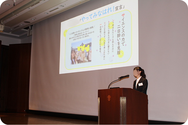 Aさんは、二日酔いのメカニズム解明への挑戦を宣言。サントリーのサイエンスの力で二日酔いの無い飲酒機会を提供することで、お酒と人との付き合い方に革命を起こしたいという思いを共有しました。そして、サントリーファンを増やし、飲食業界に貢献したいと語りました。
