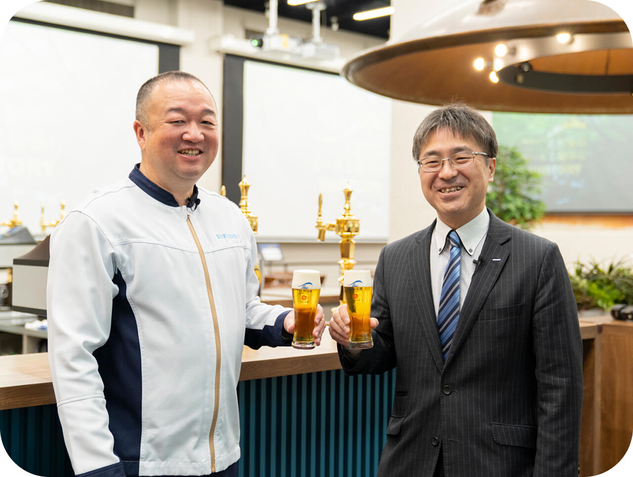 サントリーが誇る「ウイスキー」と「ビール」。製法も時間軸も異なる酒づくりの最前線で、なぜサントリーは「人」と「品質」にこだわり続けるのでしょうか。サントリーホールディングス株式会社 大阪秘書室部長 兼 マスターブレンダー補佐の野口雄志さん、サントリー株式会社 武蔵野ビール工場 工場長の丸橋太一さんという2人のトップランナーに、前後編で語っていただきました。