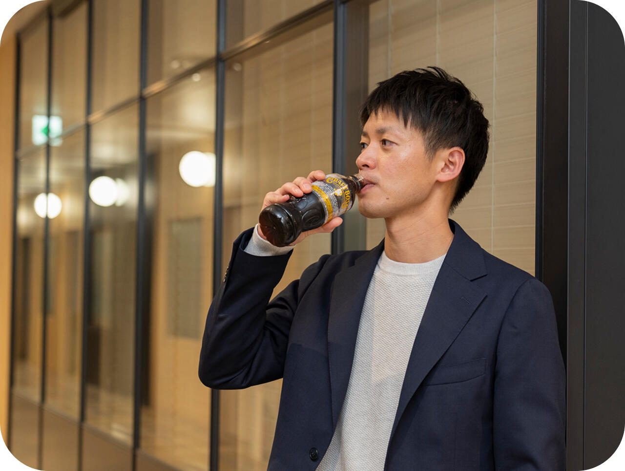 村角さん:学生時代、早朝のまだ暗い時間帯に、「BOSS」を片手に近所の海岸沿いを散歩することが、自分にとって大切なひとときでした。あるとき、ただ散歩するだけでなく、傍らに「BOSS」があることで、この時間が豊かなものになっていると気づいたんです。自分も未来の誰かにとって、そんな豊かさをもたらすものをつくりたい。そんな想いがサントリーを志望し入社することにつながりました。