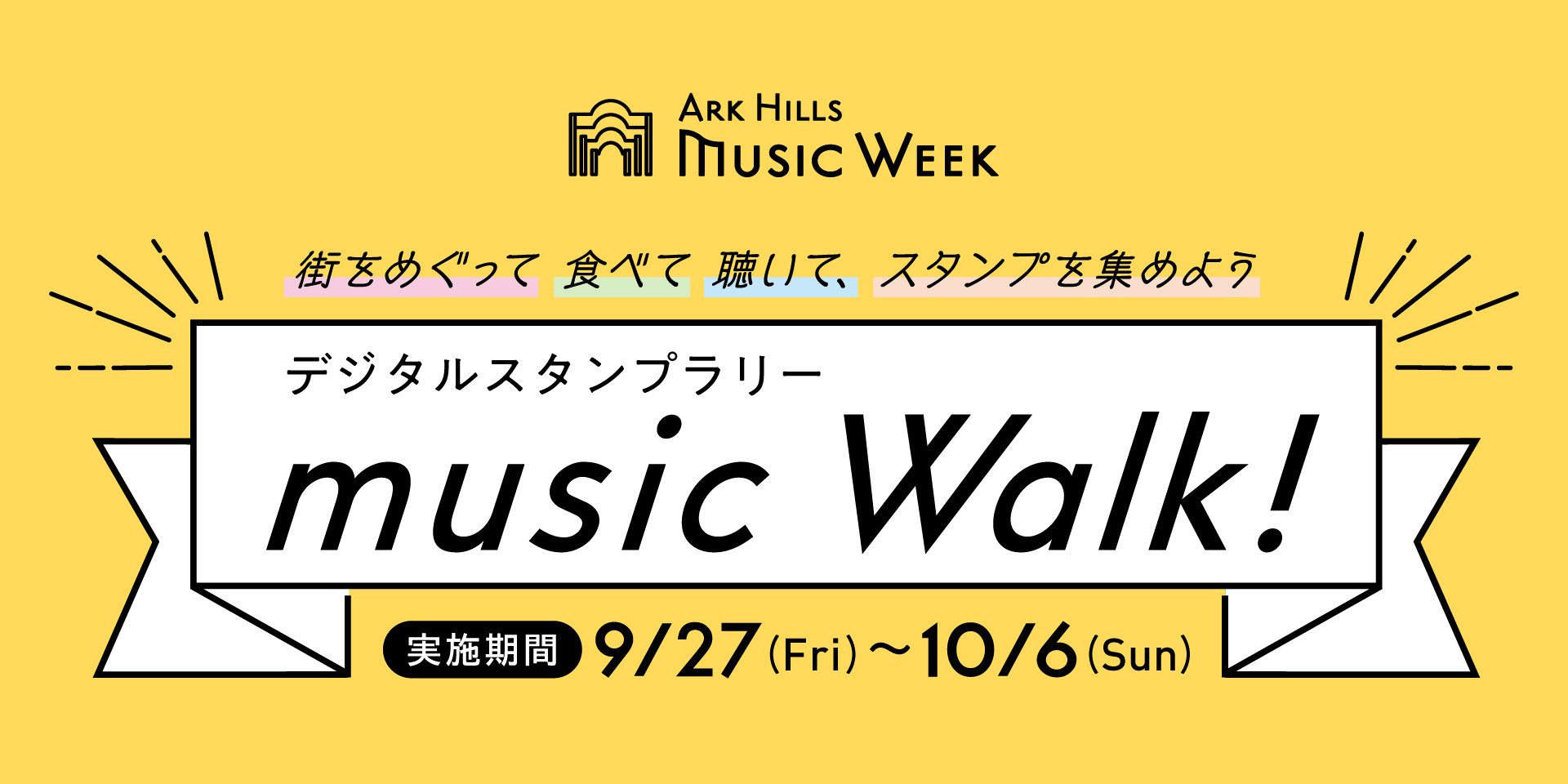 またARK Hills Music Weekの期間中、周辺エリアの飲食店、ホテル、コンサート、展覧会(てんらんかい)をめぐって豪華(ごうか)な景品(けいひん)が抽選(ちゅうせん)であたる、デジタルスタンプラリー「music Walk!(ミュージック ウォーク)」の開催も予定しています。
