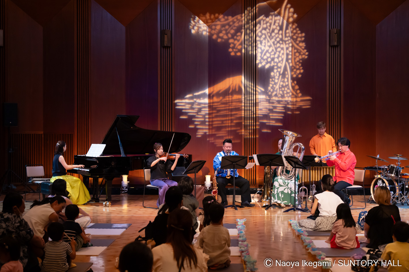 2024年7月26日(金)、27日(土)、サントリーアートキッズクラブでは、3~6歳(さい)のみんなのための夏休みプログラム「いろいろドレドレ ―美術(びじゅつ)と音楽に親しむワークショップ&コンサート― vol. 8 へんしん! なりきりファッションショー」をサントリーホール ブルーローズ(小ホール)で開催(かいさい)しました。
