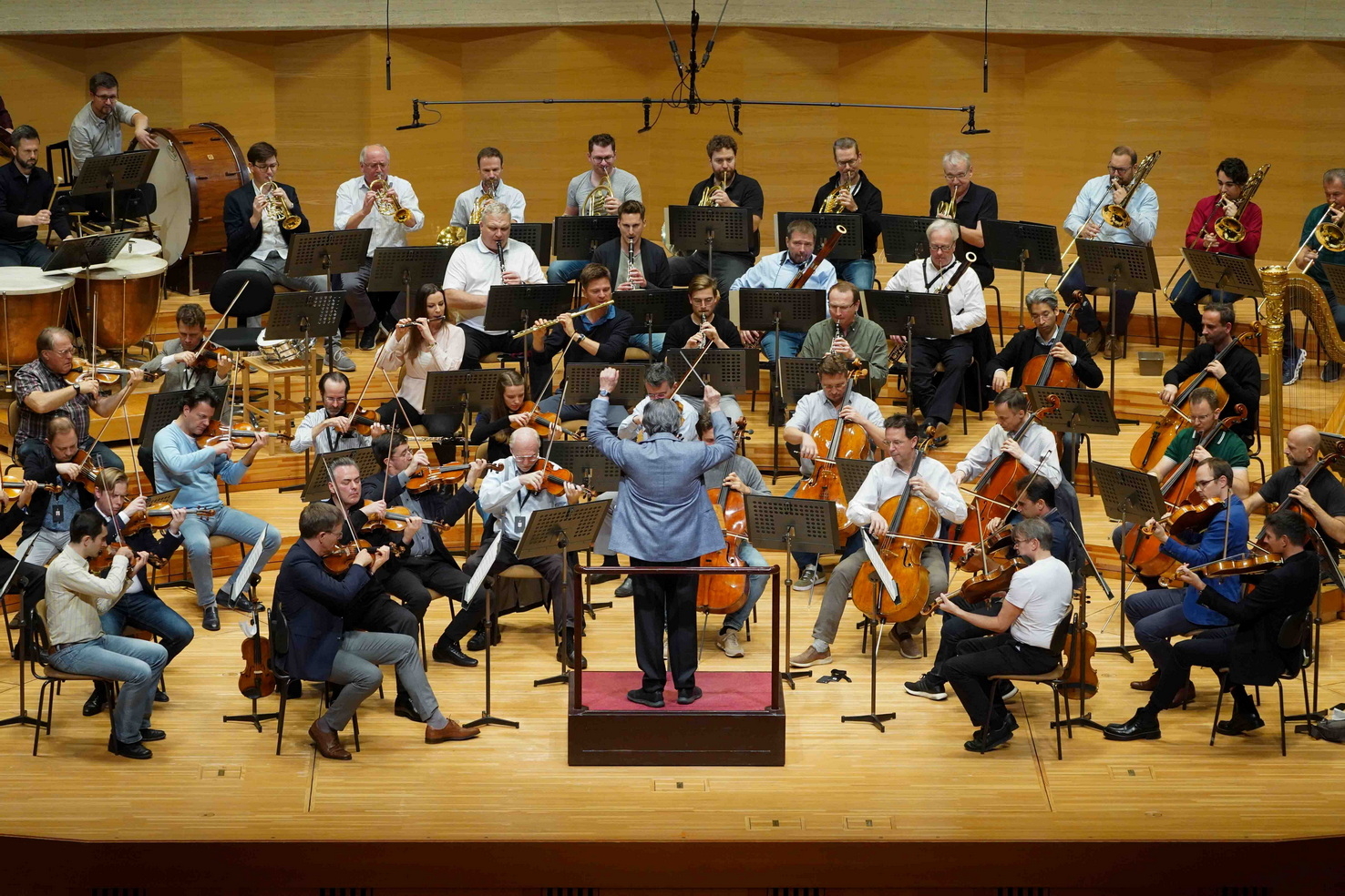 2021年の青少年プログラム。指揮者のリッカルド・ムーティとウィーン・フィルによる私服で和やかな雰囲気の演奏 ©SUNTORY HALL
